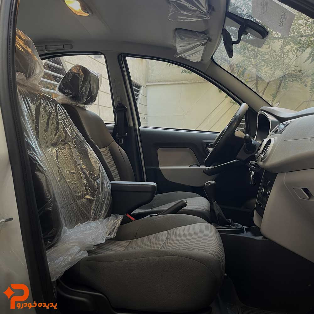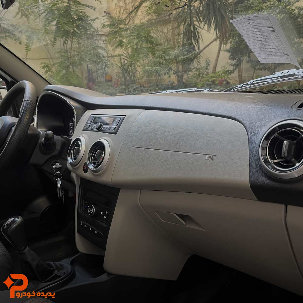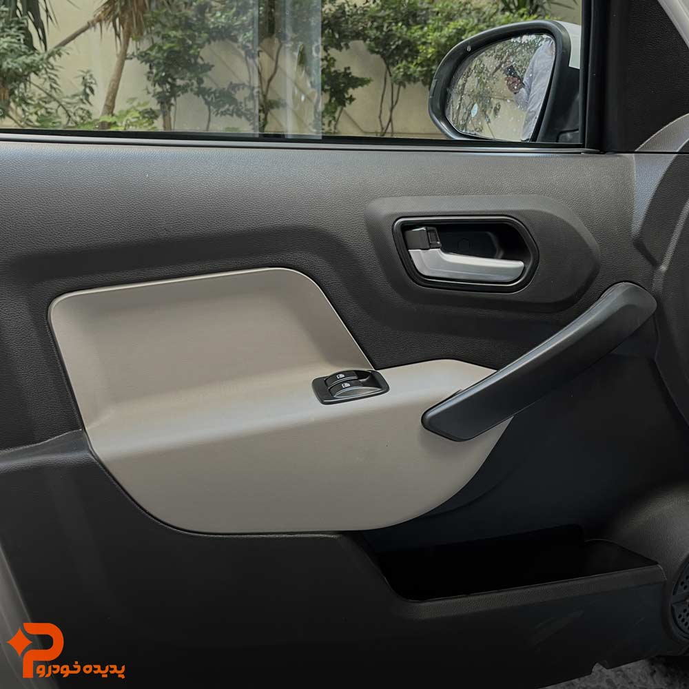 فضای داخلی خودرو با در نظر گرفتن راحتی و نیازهای روزمره طراحی شده است. این خودرو دارای کابینی جادار با صندلیهای راحت و فضای کافی برای سرنشینان جلو و عقب است. استفاده از مواد باکیفیت و طراحی ارگونومیک داشبورد، تجربه رانندگی را لذتبخشتر میکند. امکانات پایهای نظیر سیستم تهویه مطبوع، سیستم صوتی با قابلیت اتصال به تلفن همراه، و پنلهای کنترلی ساده و کاربرپسند، فضای داخلی خودرو را به محیطی دلپذیر و کاربردی تبدیل کردهاند.